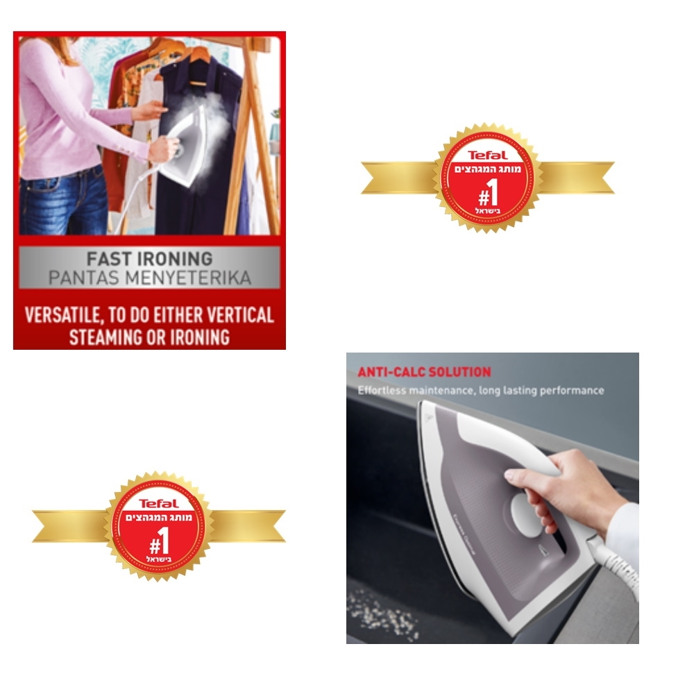 מגהץ קיטור איכותי מבית המותג הצרפתי Tefal | מילוי מים גם במהלך הגיהוץ | מוכן לעבודה תוך 2 דקות בלבד