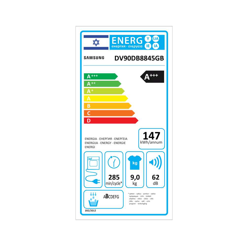 מייבש הכביסה סמסונג Bespoke DV90DB8845GB בצבע שחור עם טכנולוגיית Heat Pump חוסך באנרגיה ובזמן, ושומר על הבגדים שלכם בצורה אופטימלית. עם טכנולוגיות מתקדמות כמו AI Dry+ שמתאים את זמן הייבוש אוטומטית, ו-Auto Cycle Link שמסנכרן את המייבש עם מכונת הכביסה, הוא הופך את פעולת הכביסה לפשוטה, חכמה ויעילה. העיצוב המודרני והיוקרתי משתלב בצורה מושלמת בכל חלל.