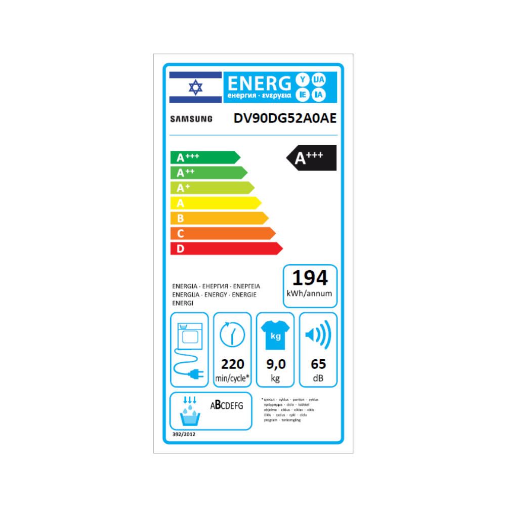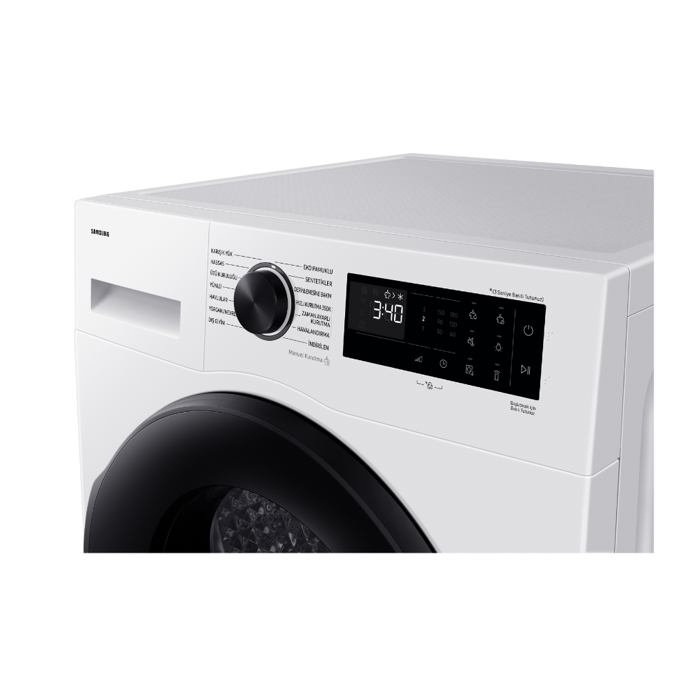 מייבש כביסה DV90DG52A0AE Heat Pump של סמסונג, בקיבולת 9 ק"ג, מציע ייבוש מתקדם וחסכוני במיוחד הודות לטכנולוגיית משאבת החום Digital Inverter, המבטיחה חיסכון עצום באנרגיה. ייחודו בחיבור החכם למכונת הכביסה דרך SmartThings, המייעל את תהליך הייבוש, במגוון התוכניות החכמות המותאמות לסוגי בד שונים, מה שמבטיח טיפול אופטימלי בכביסה שלכם ובטכנולוגיית Optimal Dry השומרת על הבגדים.