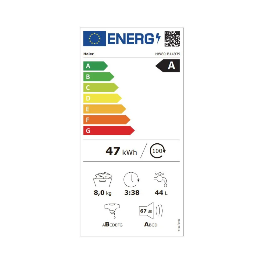 מכונת כביסה 8 ק"ג כסופה HAIER HW80B14939S8